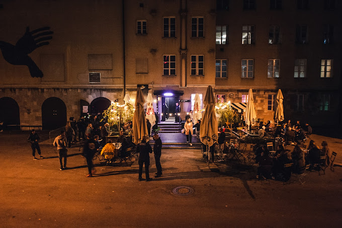 Pionirski dom is located at Vilharjeva Street 11, on the left side of the road.