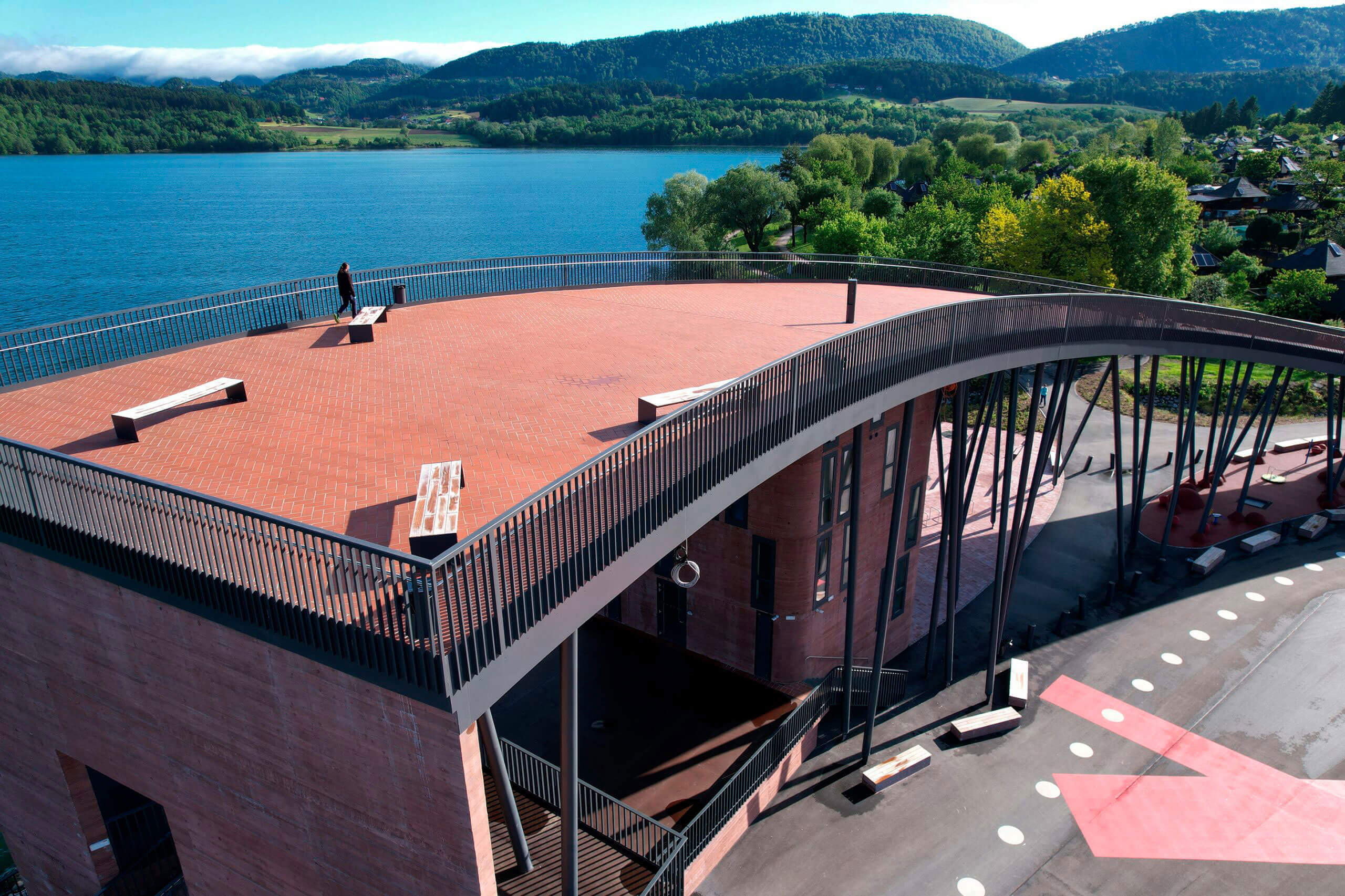 A large free parking lot is located directly next to the park, right by Lake Velenje.